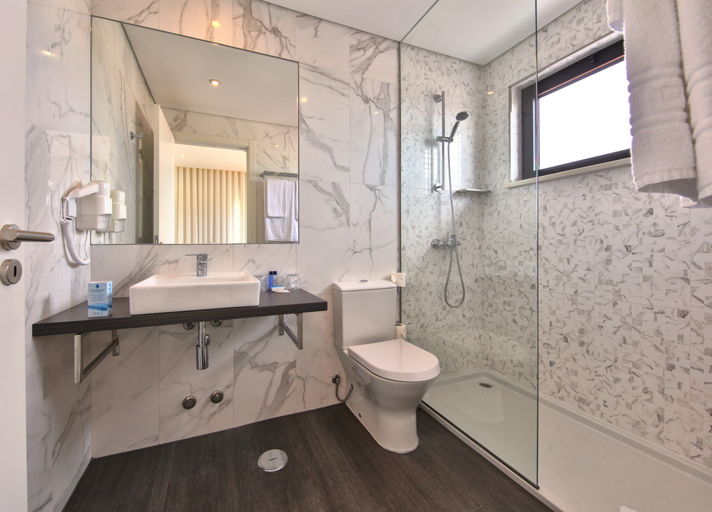 Dimensão: 17m2 Tipo de quarto: Duplo Tipos de cama: 1 Cama de Casal ou 2 Individuais Comodidades do quarto: Duche, TV via satélite, Telefone, Ar-condicionado, Secador de cabelo, Secretária, Produtos de Higiene Pessoal gratuitos, acesso à Internet.